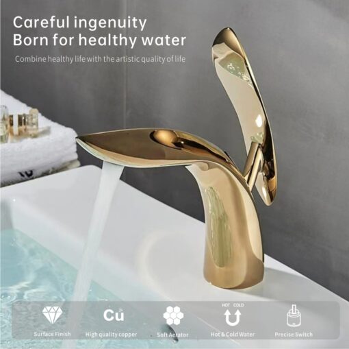 The willow leaf-shaped brass faucet stands out with its unique design and excellent functionality, perfect for both modern and vintage home decor. Made from high-quality materials, it is durable and brings a luxurious yet natural vibe to your bathroom or kitchen.